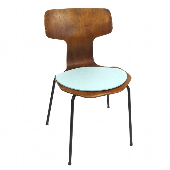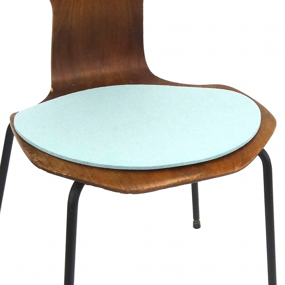 Maßgefertigte Sitzauflage für den Arne Jacobsen Stuhlklassiker 3103 von Fritz Hansen. Die gemütlichen Auflagen sind aus 5mm starkem Wollfilz, der aus 100% Schurwolle gefertigt wird. Damit nichts verrutscht hat die Sitzauflage für den 3103 Stuhl unterseitig eine Antirutschbeschichtung.