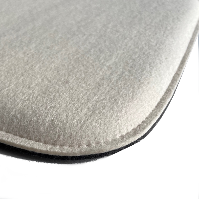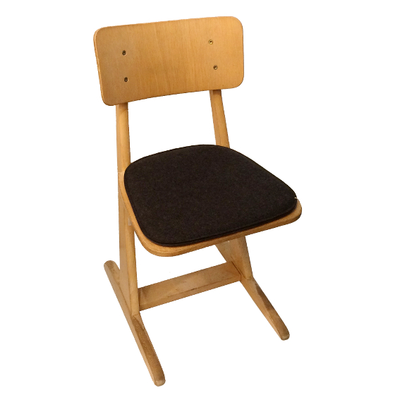 Maßgefertigtes Stuhlkissen für unseren Schuhlstuhl aus Massiv. Der Stuhl weckt Erinnerungen an meine Schuhlzeit. Stabil und unkaputtbar, aber auch unbequem ohne Kissen. Dieser Schuhlstuhl aus Massivholz ist aber von einem unbekannten Hersteller und kann nicht genau zugeordenet werden. Das Kissen besteht aus 2 Lagen Filz aus Schurwolle à jeweils 3 mm, gefüttert mit einem 10 mm dicken Inlay aus Schaumstoff. Dadurch ist es besonders weich und optimiert noch einmal den Sitzkomfort und die Optik ihres Stuhls. Die Unterseite des Stuhlkissens für den Stapelstuhl ist immer 012 Anthrazitgrau meliert und hat eine Antirutschbeschichtung.